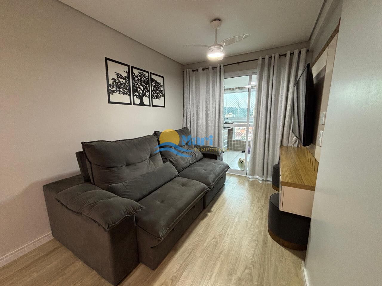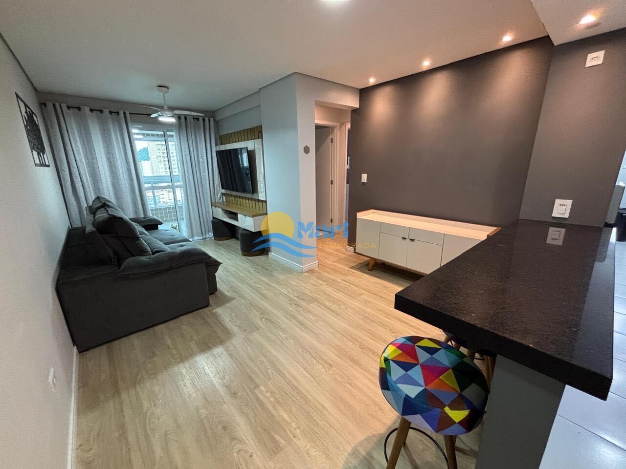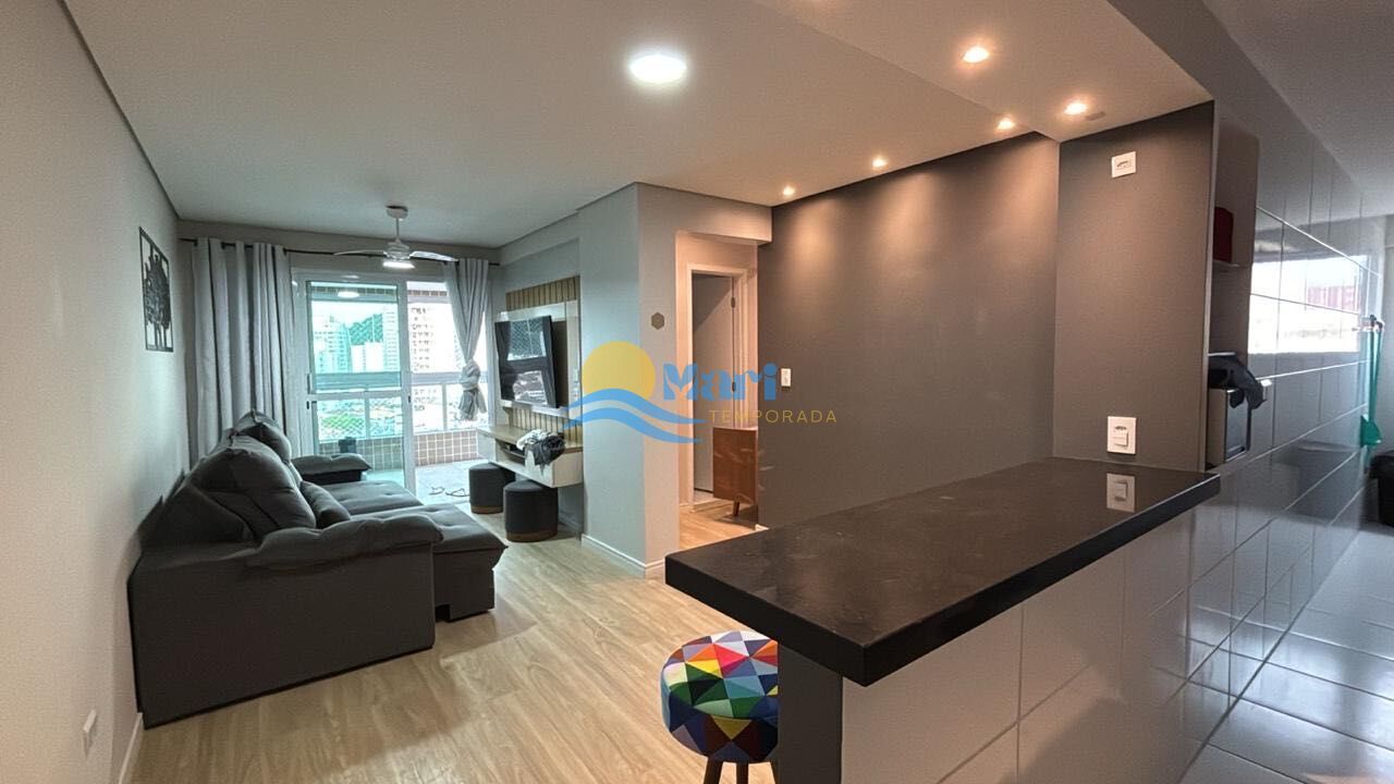 Apartamento á venda no bairro Canto do Forte em Praia Grande - SP. Contendo: 2 dormitorios sendo uma suite, sala dois ambientes com sacada gourmet, cozinha, area de servico, banheiro social e uma vaga de garagem. Totalmente mobiliado.