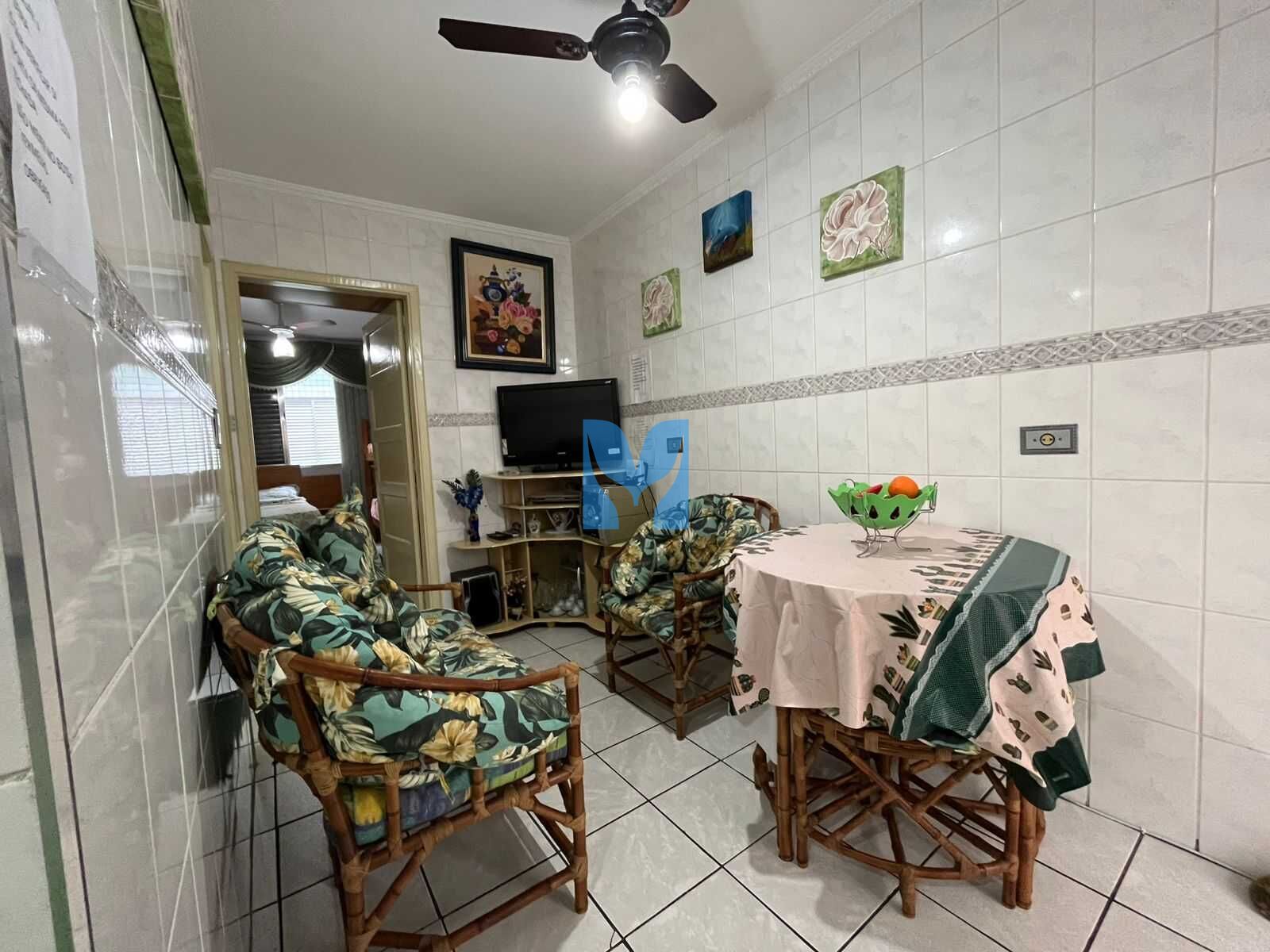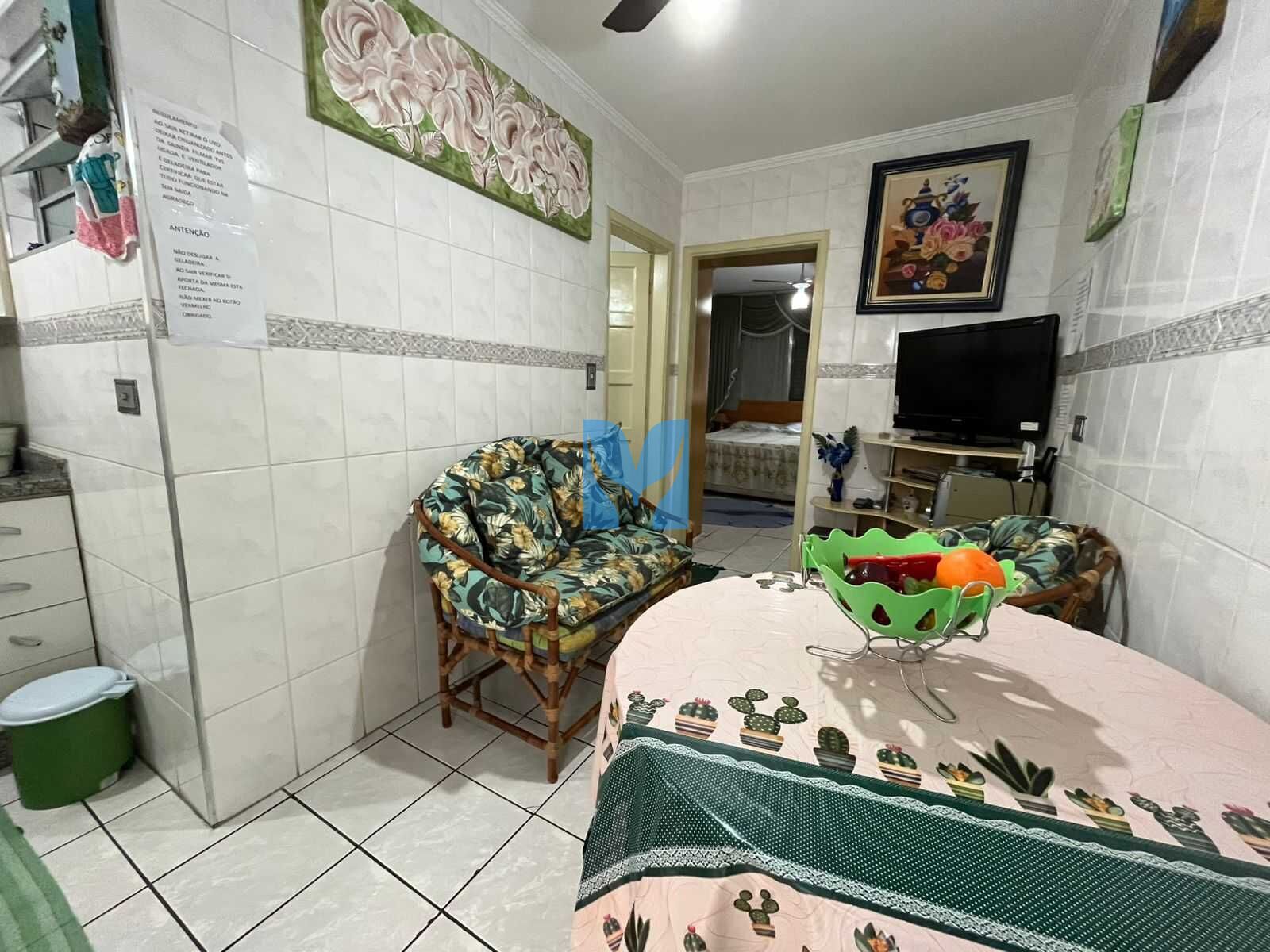 Kitnet à venda no bairro Guilhermina em Praia Grande, SP. 1 dormitório sala integrado com a cozinha mobiliada, área de serviço e um banheiro social e uma vaga de garagem.