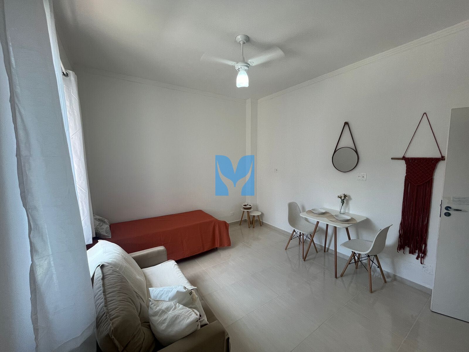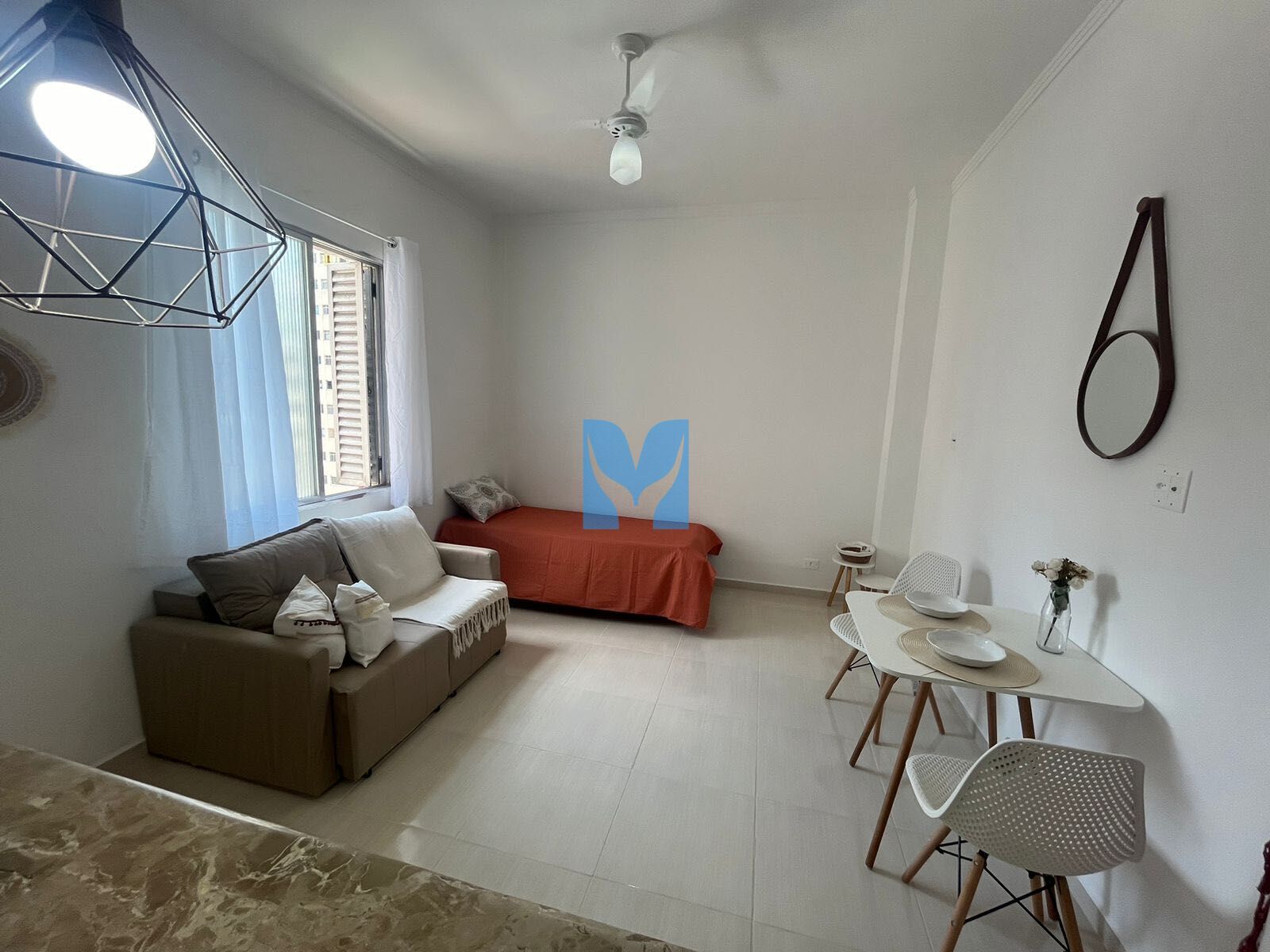 Kitnet mobiliada à venda no bairro Guilhermina em Praia Grande, SP. Sala livre, cozinha, um banheiro social. Prédio frente mar!