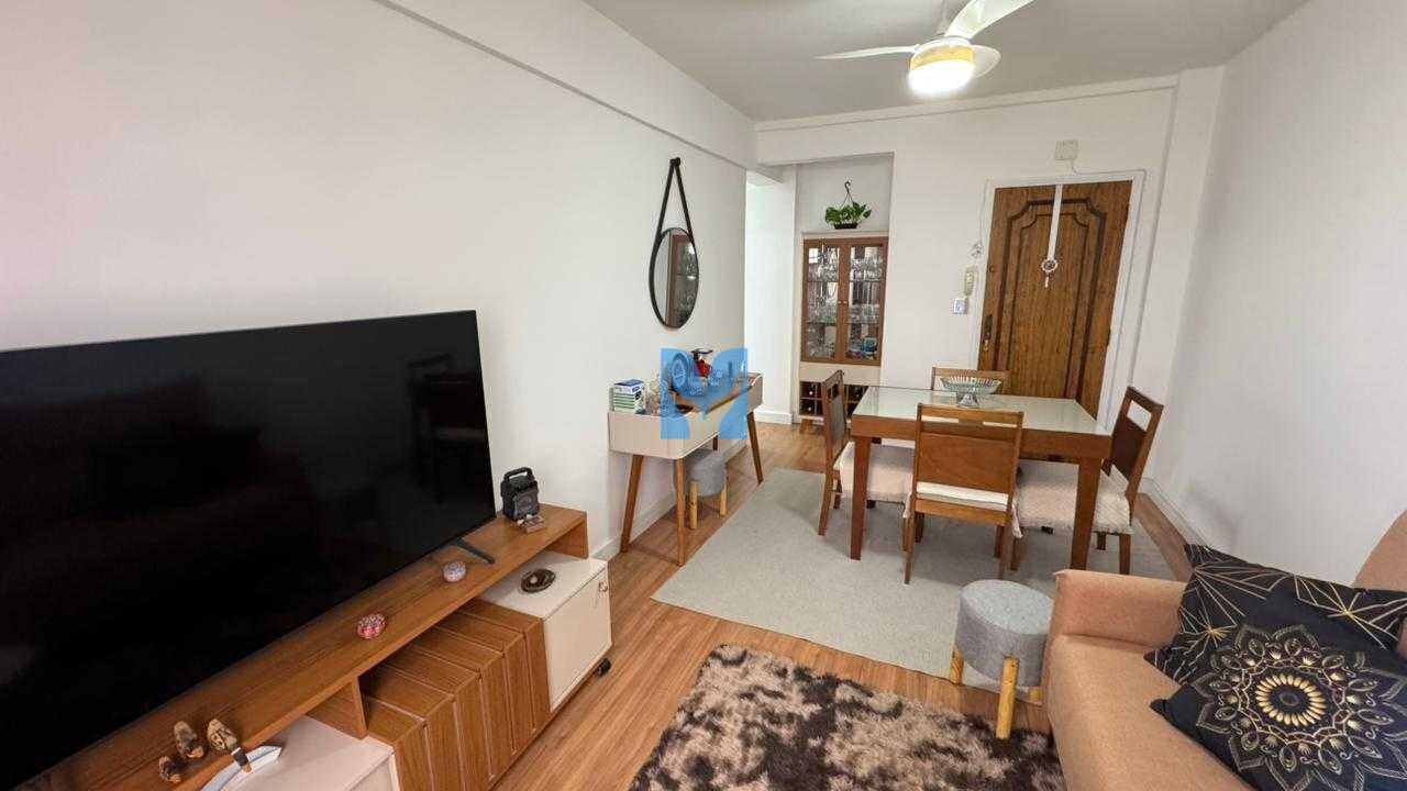 Apartamento mobiliado à venda no bairro Boqueirão em Praia Grande, SP.1 dormitório, sala, cozinha, área de serviço, banheiro social e uma vaga de garagem.