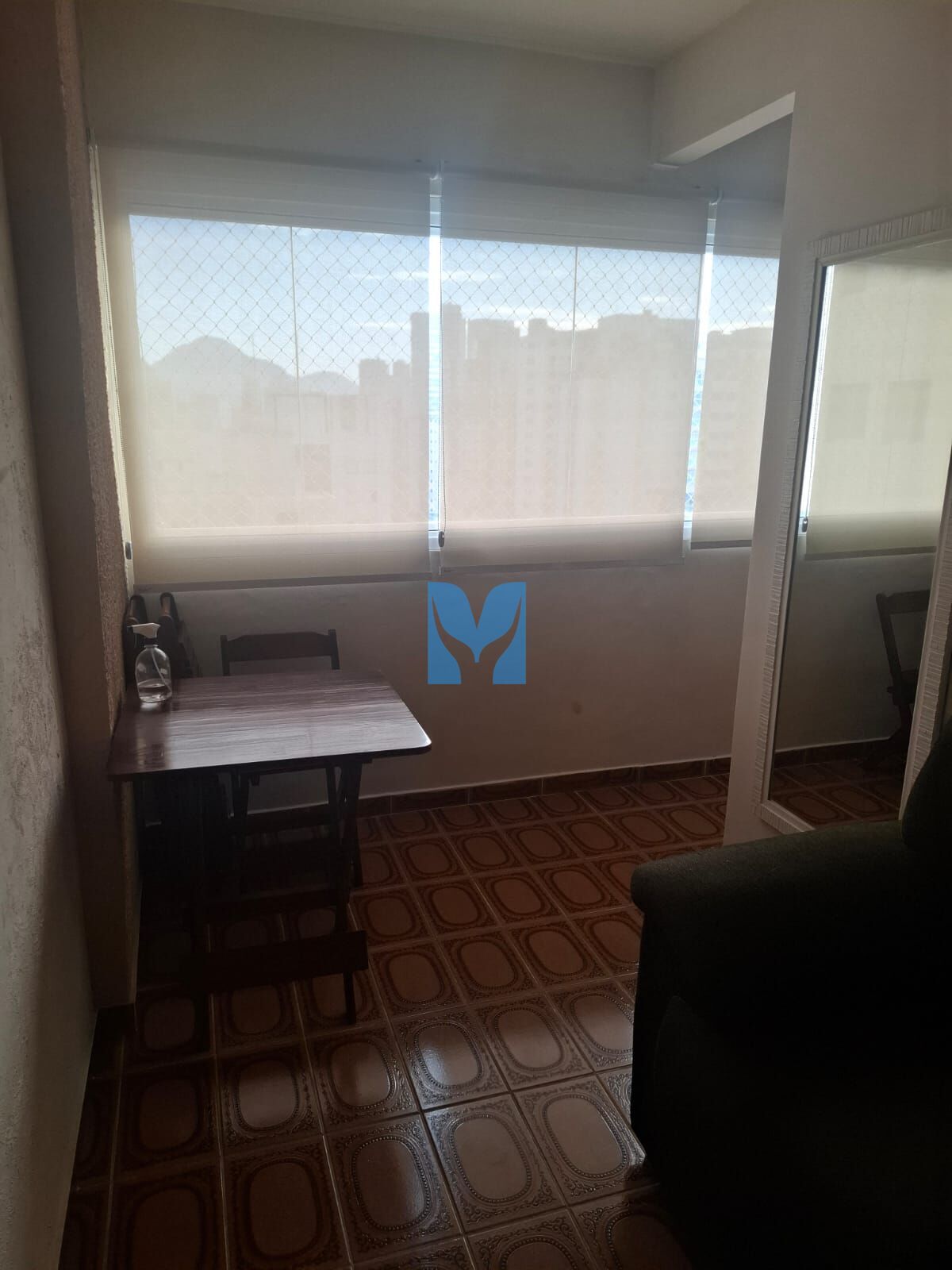 Apartamento Vista Mar mobiliado à venda na Guilhermina Praia Grande, SP. 1 dormitório, sala, cozinha, área de serviço, banheiro social, uma vaga de garagem.