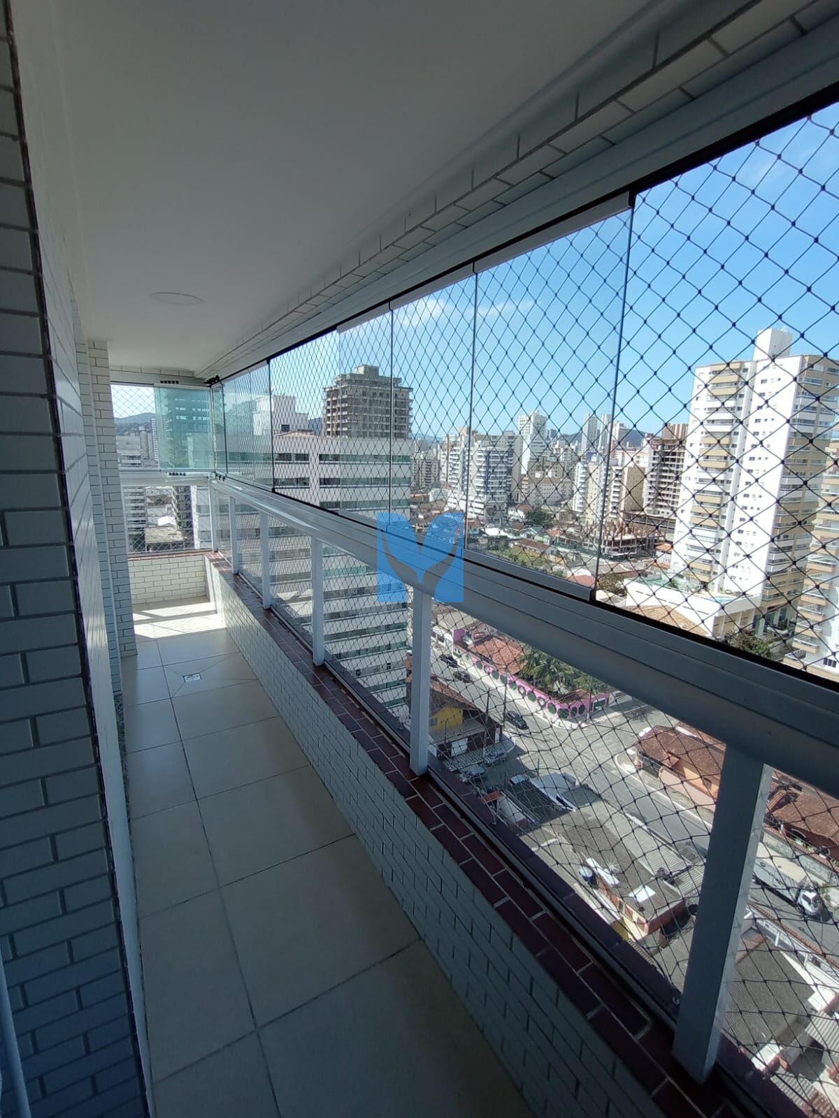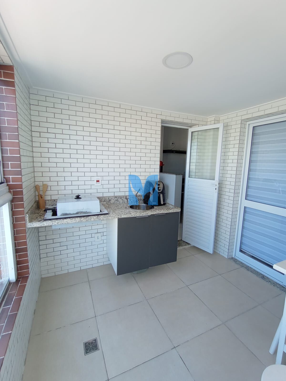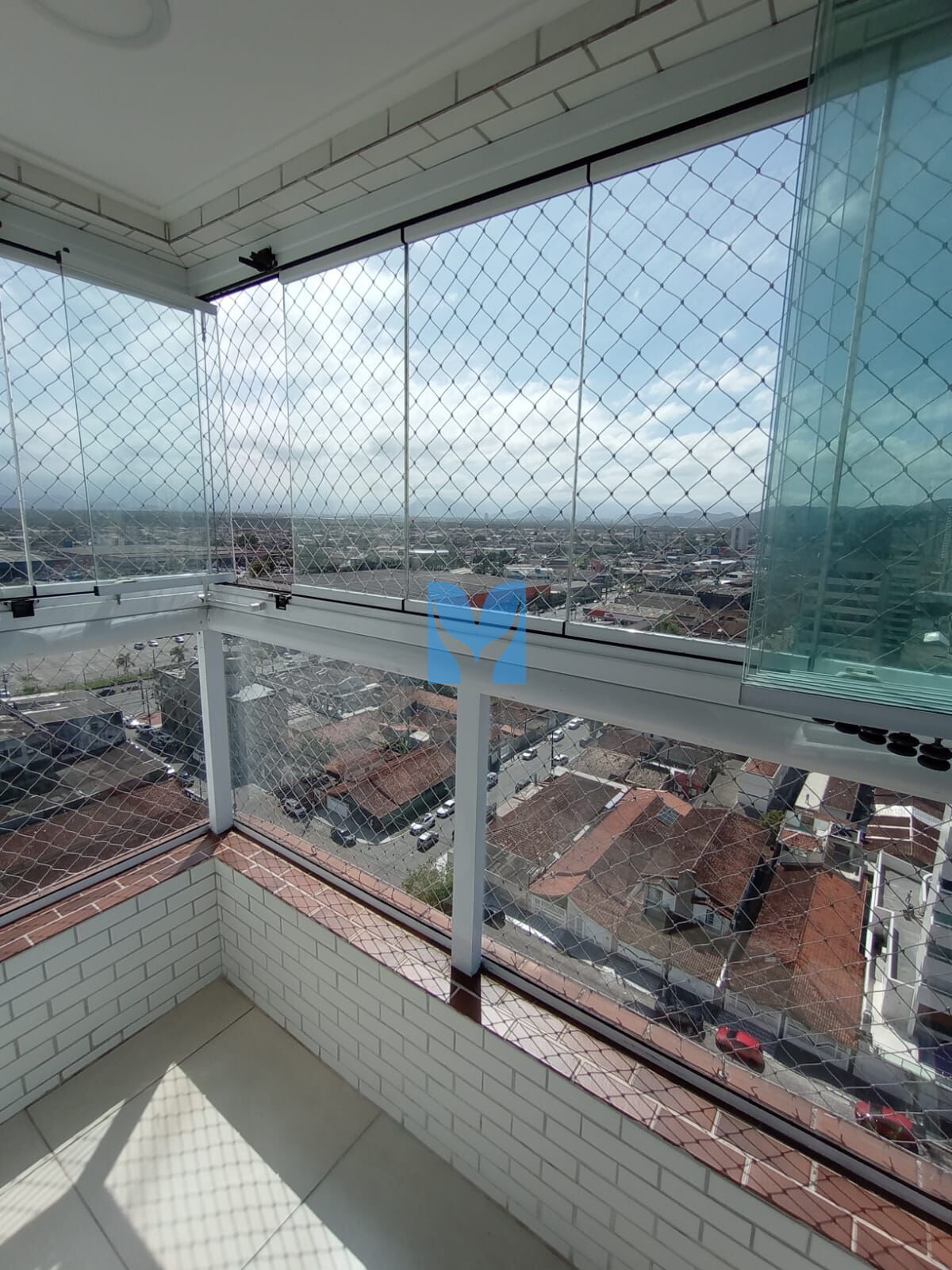 Apartamento semi mobiliado à venda na Guilhermina Praia Grande, SP. 2 dormitórios, sendo um suíte, sala com sacada gourmet envidraçada!