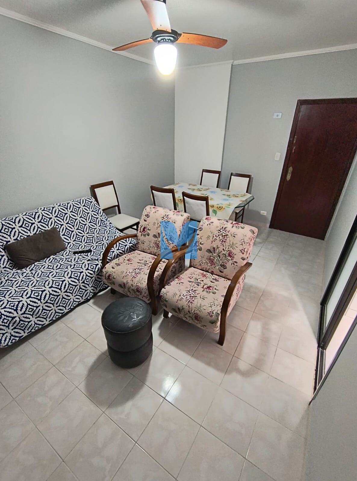 Apartamento à venda no bairro Canto do Forte Praia Grande, SP. 1 dormitório, sala, cozinha, área de serviço, banheiro social, uma vaga de garagem.