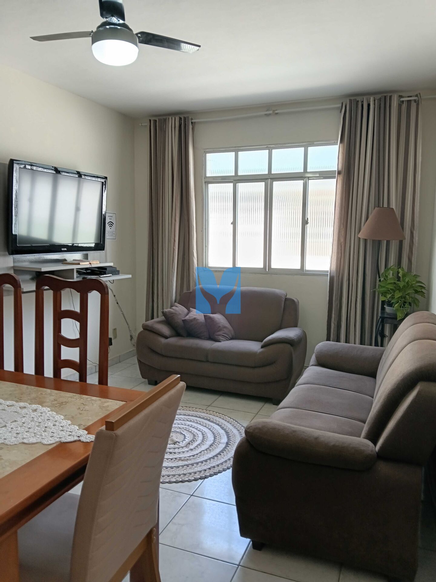 Apartamento à venda no bairro da Guilermina em Praia Grande, SP com 3 dormitórios sendo 1 suite, sala, cozinha com armário, área de serviço, banheiro social e uma vaga de garagem. Será vendido semi mobiliado.