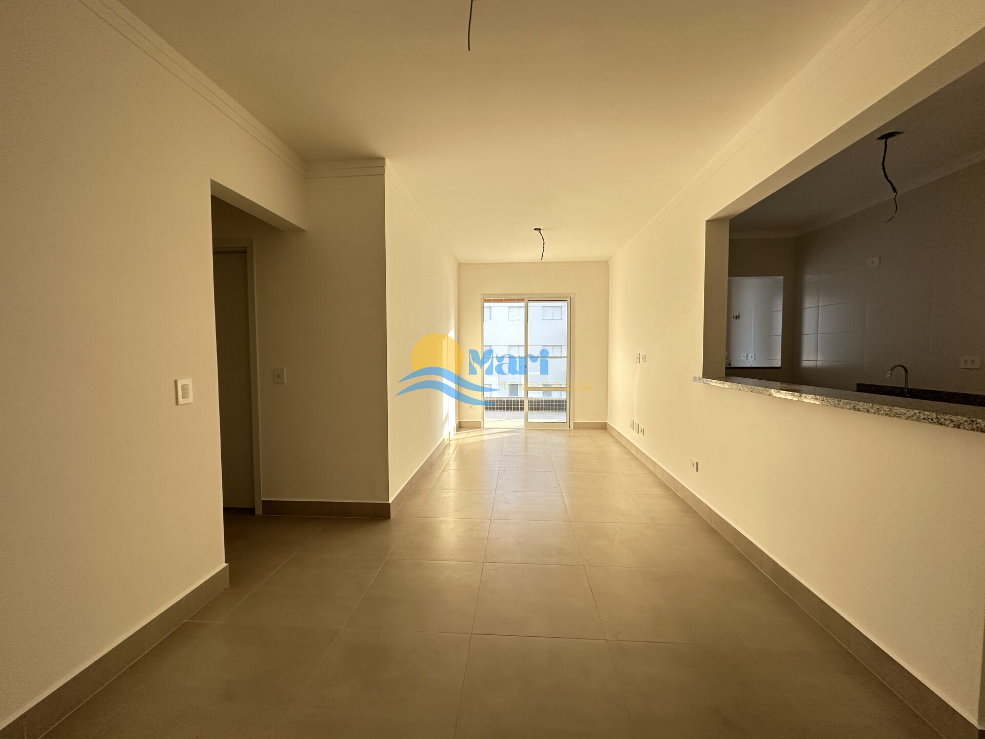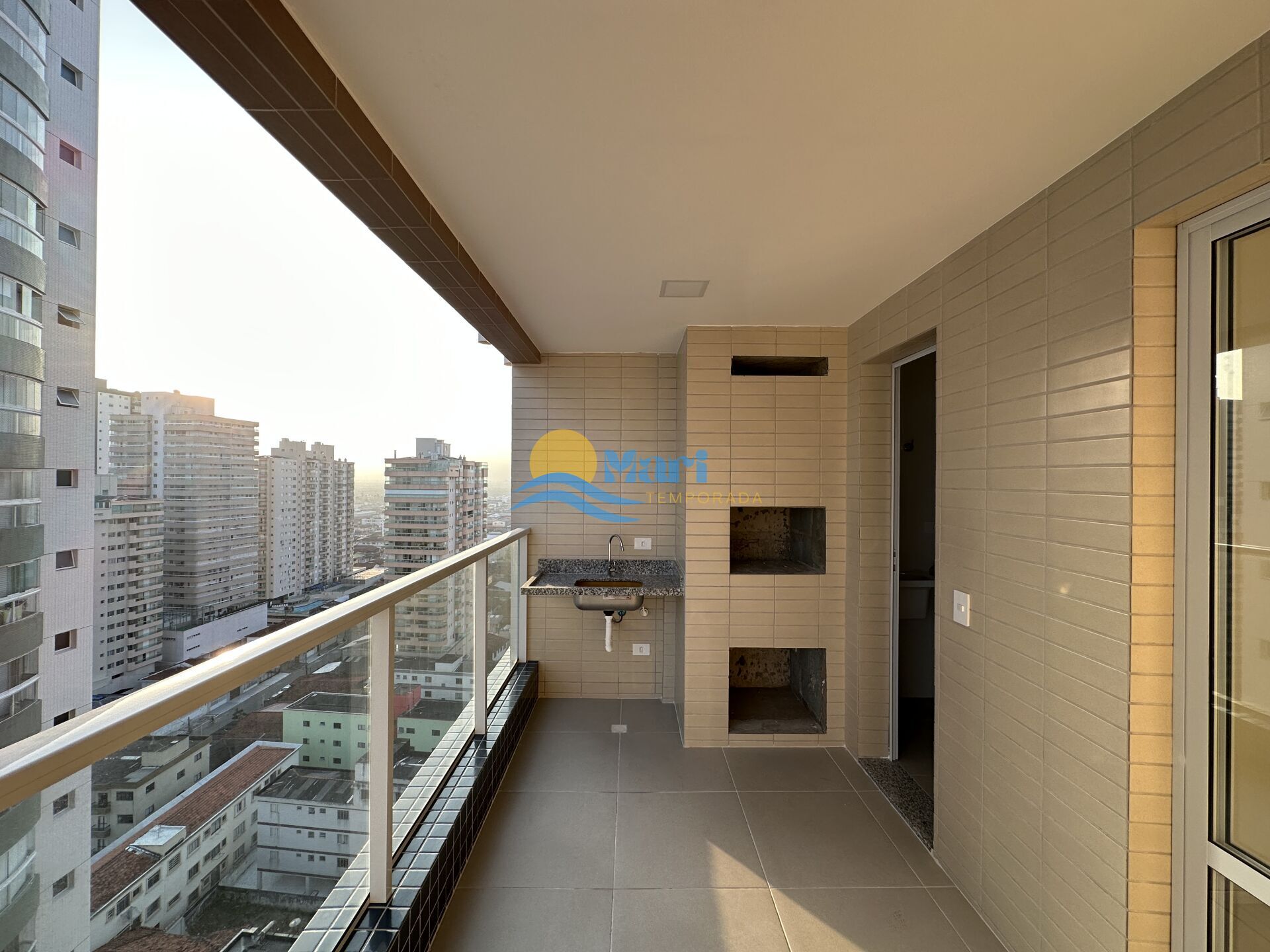 Apartamento à venda no bairro Aviação em Praia Grande, SP. 2 dormitórios (1 suíte), sala dois ambientes com sacada gourmet, cozinha americana, área de serviço, banheiro social e uma vaga de garagem.