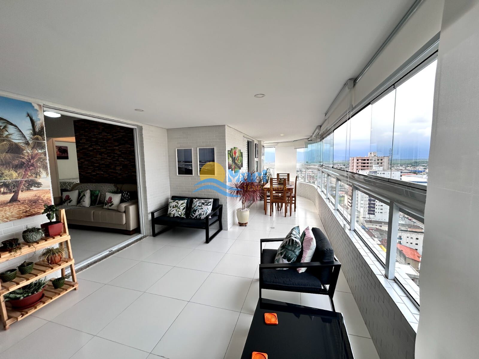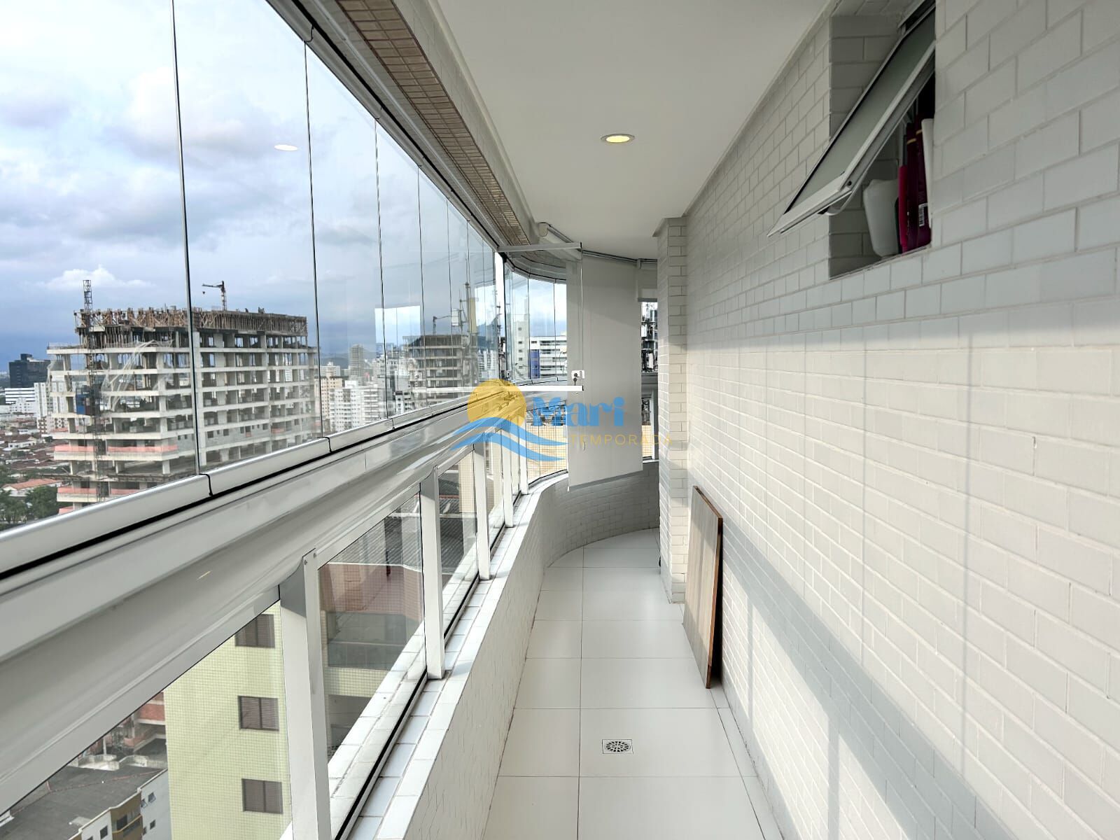 Apartamento à venda no bairro Aviação em Praia Grande, SP. Com 2 dormitórios, 1 suíte, sala 2 ambientes, sacada da a volta no apartamento, cozinha toda planejada, área de serviço, banheiro social e 1 vagas de garagem. Vista lateral do mar!