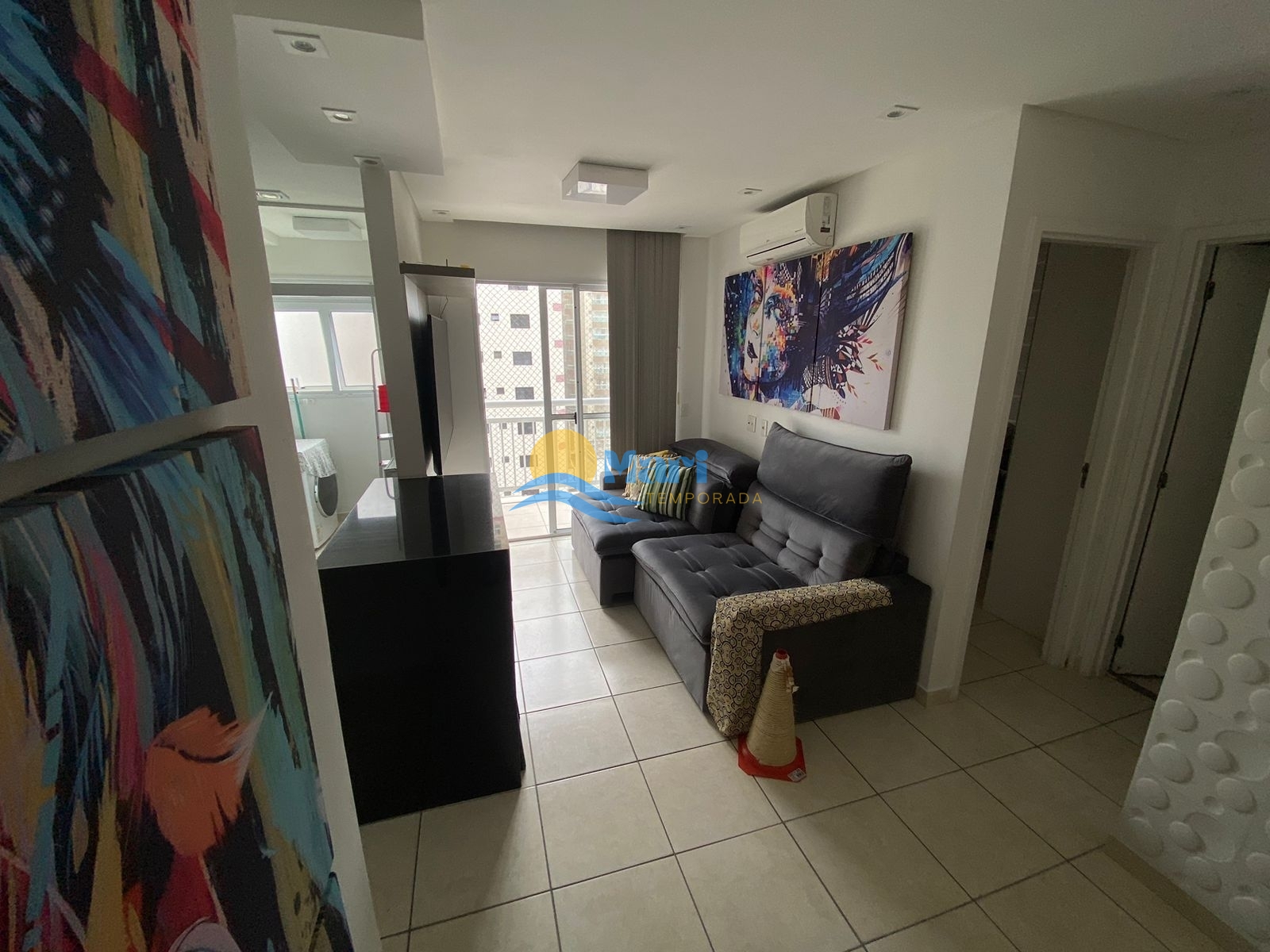 Apartamento à venda no bairro Ocian em Praia Grande, SP. 1 dormitório, sala dois ambientes com sacada, cozinha planejada, área de serviço, banheiro social e uma vaga de garagem. Será vendido com os planejados.