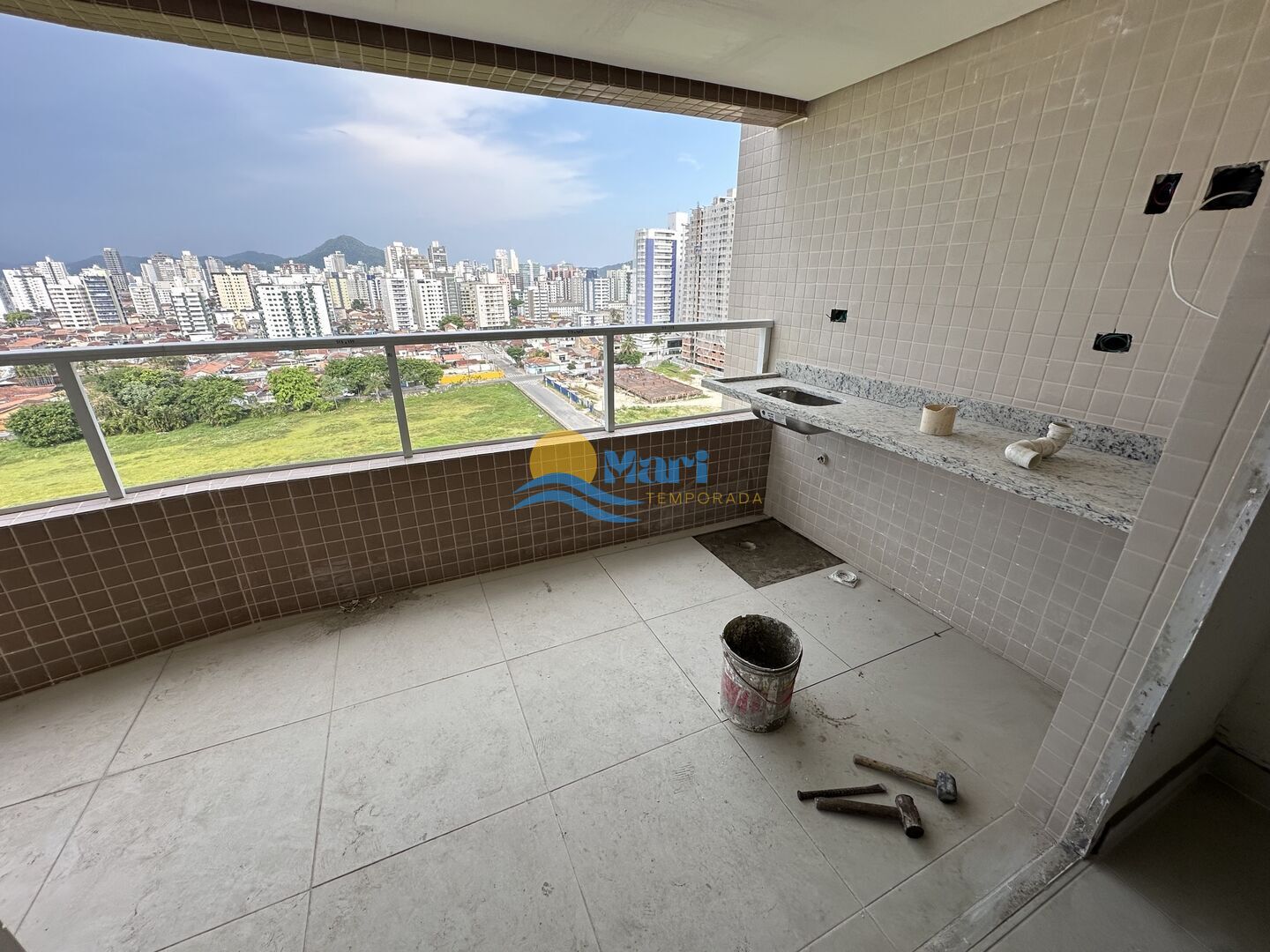 Apartamento à venda no bairro Aviação em Praia Grande, SP. 3 dormitórios sendo 3 suíte, sala dois ambientes com sacada, cozinha americana, área de serviço, lavabo e duas vaga de garagem demarcadas.