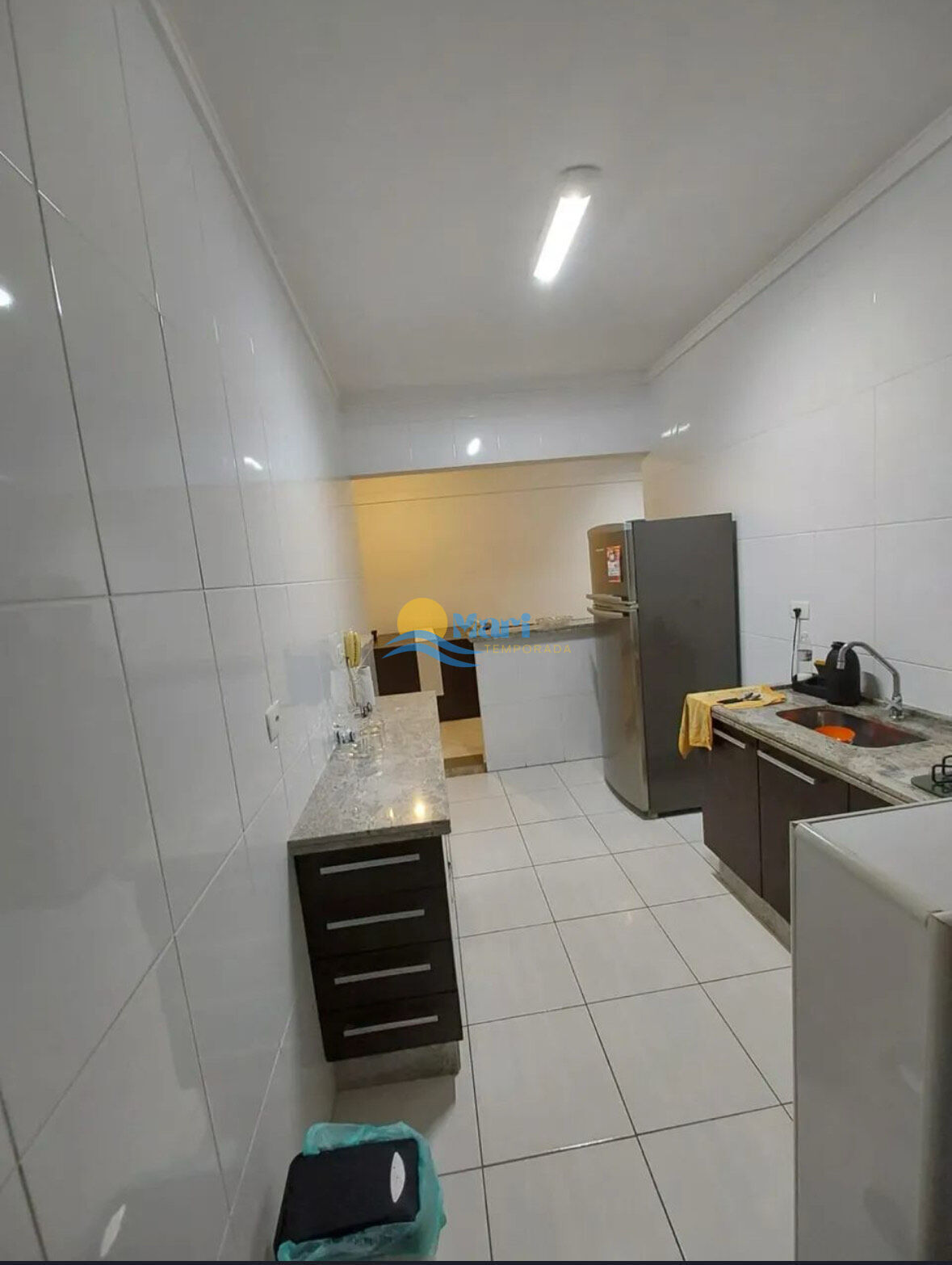 Apartamento para locação definitiva no bairro Canto do Forte em Praia Grande - SP. Contendo: Um dormitório sendo uma suíte, cozinha planejada, área de serviço, sala dois ambientes, banheiro social e uma vaga de garagem. Será locado mobiliado, será entregue com armários planejados na cozinha. (Sairá: Televisão)