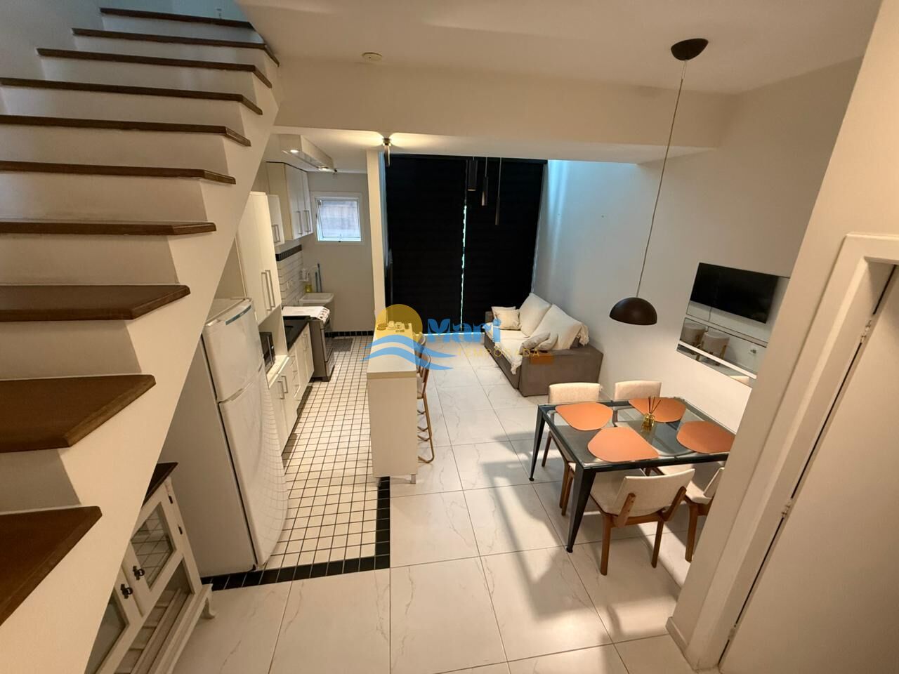 Apartamento loft para locação no bairro Gonzaga em Santos - SP, 1 dormitório sendo uma suíte, sala, cozinha e um banheiro social com uma vaga de garagem. Será locado com mobília.