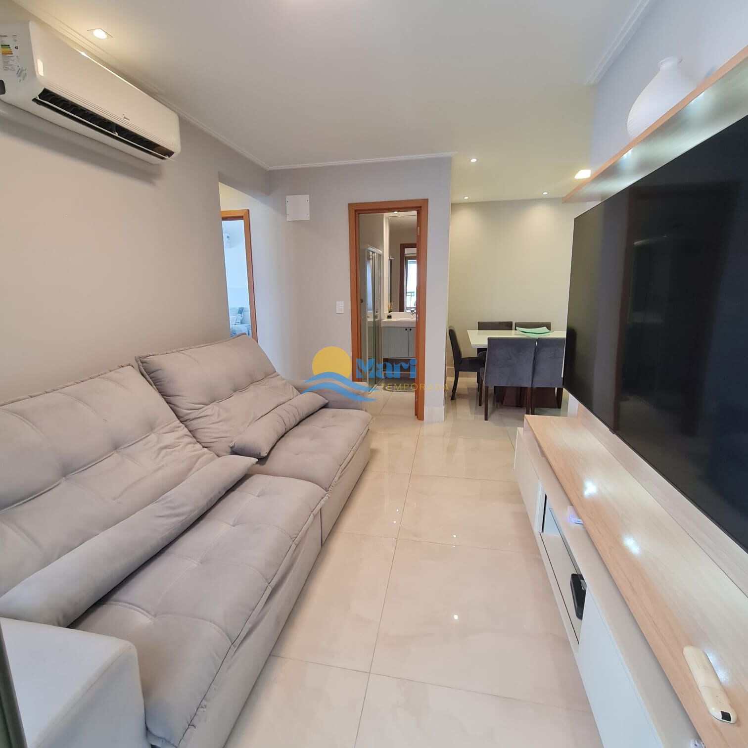 Apartamento à venda no bairro Boqueirão em Praia Grande, SP. 2 dormitórios sendo 1 suíte, sala dois ambientes com sacada envidraçada, cozinha planejada, área de serviço, banheiro social e 2 vagas de garagem.
