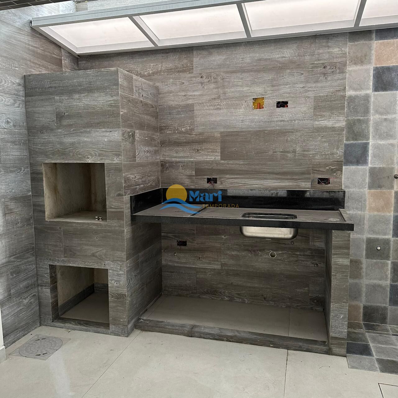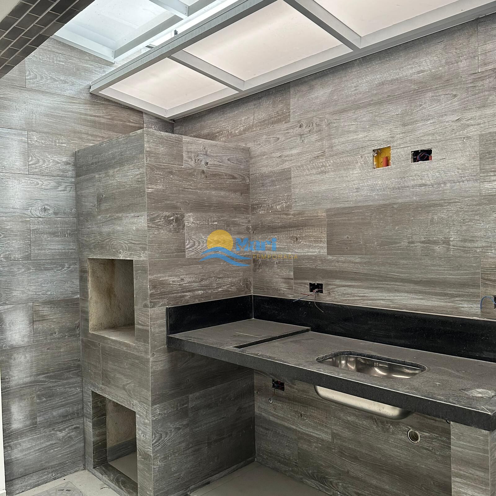 Casa triplex á venda em condomínio fechado no bairro Guilhermina - Praia Grande - SP. Com 2 dormitórios, sendo 2 suítes. Sala com cozinha integrada conceito aberto, um lavabo, área de serviço, 1 vaga de garagem privativa, com churrasqueira e pia. Portas com fechadura eletrônica, portão automático.