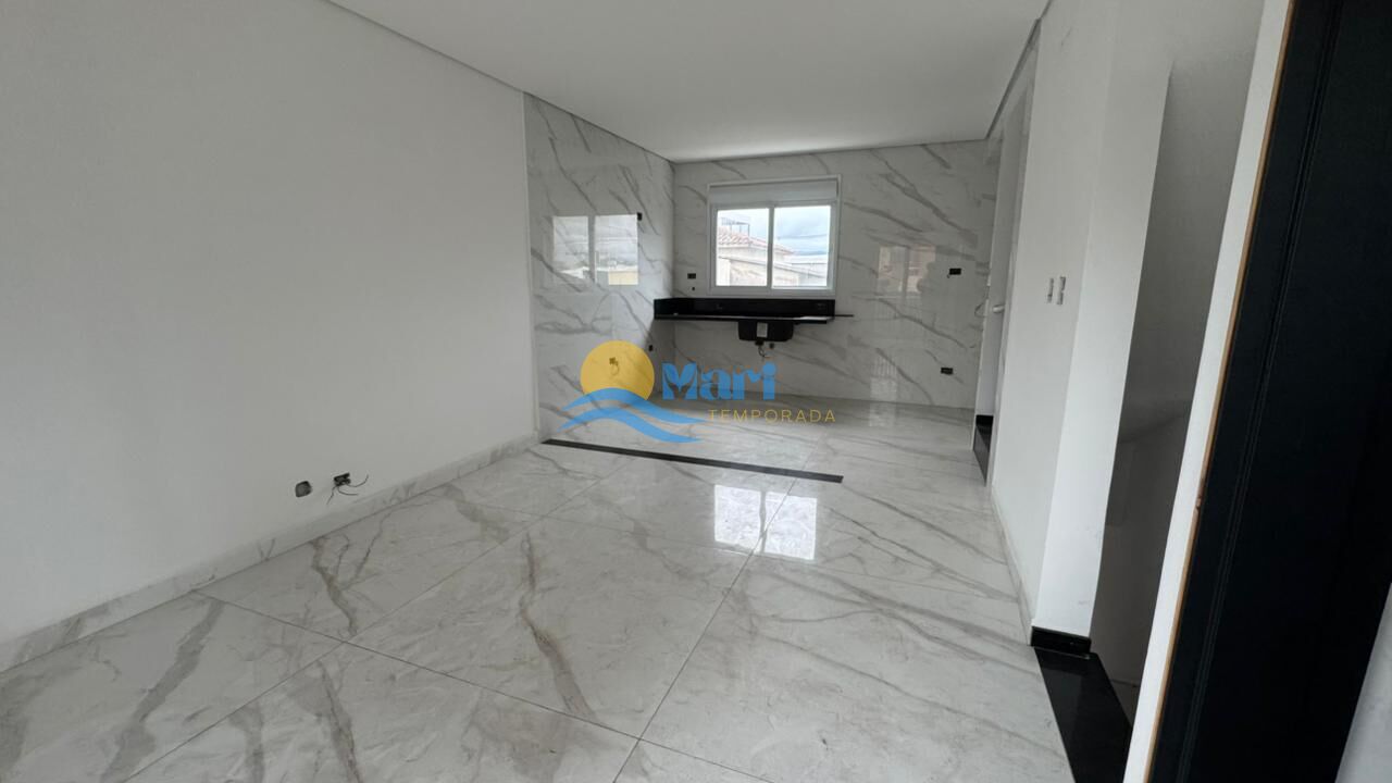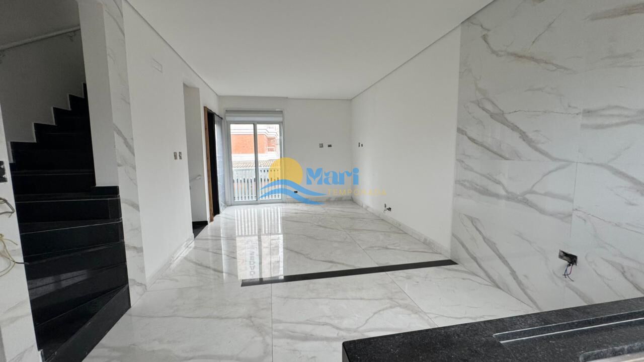 Casa triplex á venda em condomínio fechado no bairro Guilhermina - Praia Grande - SP. Com 2 dormitórios, sendo 2 suítes. Sala com cozinha integrada conceito aberto, dois lavabo, área de serviço, 1 vaga de garagem privativa, com churrasqueira e pia. Portas com fechadura eletrônica, portão automático.