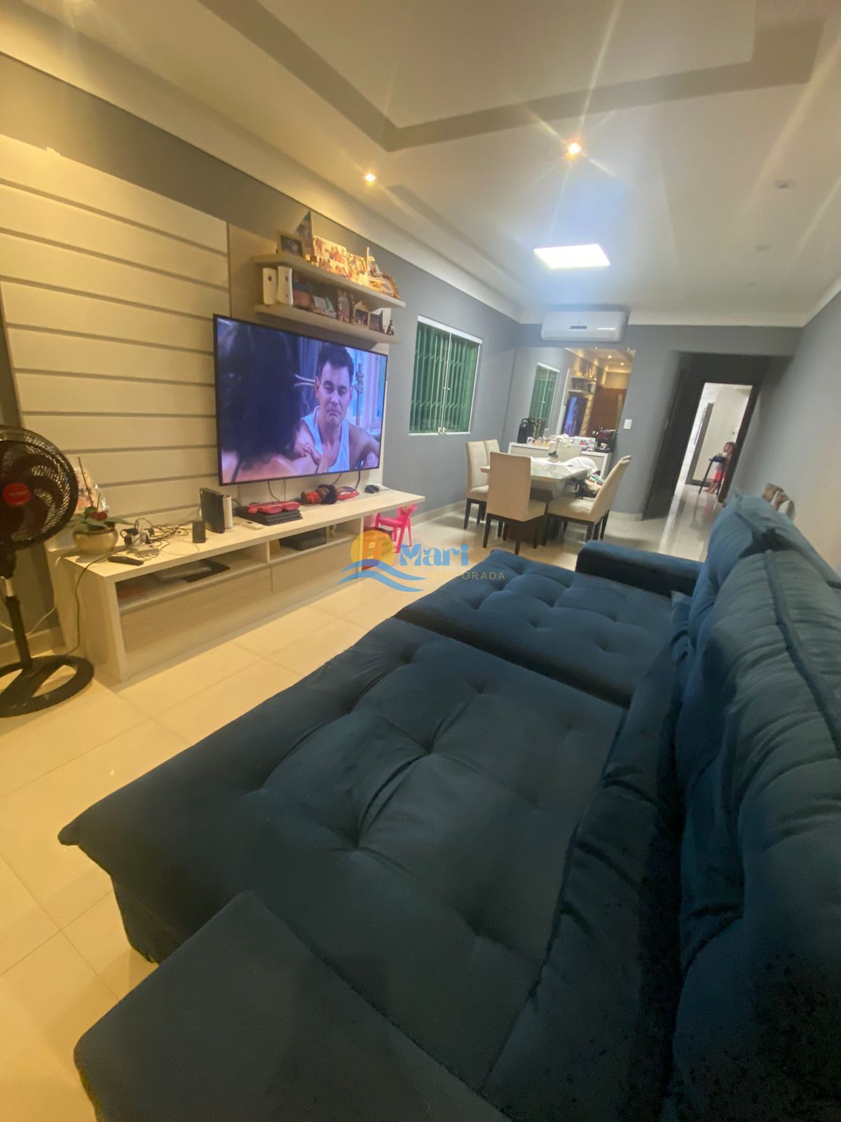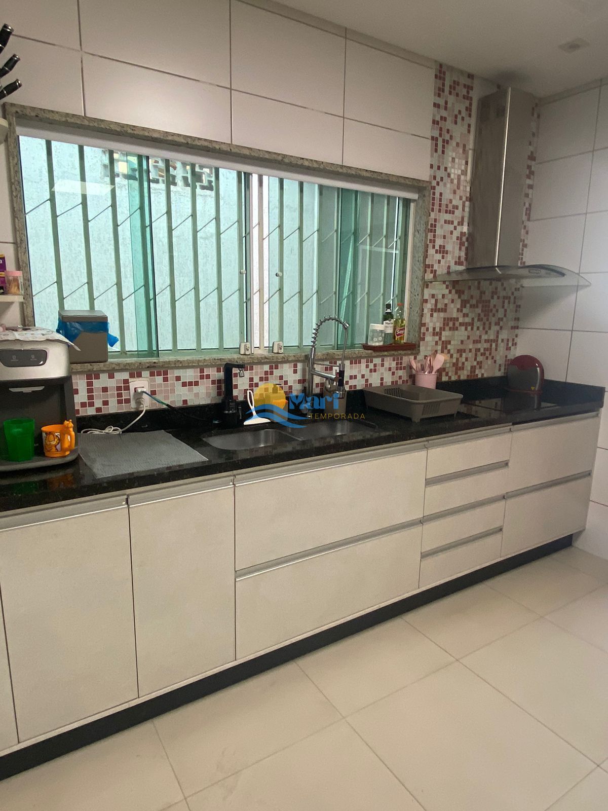 Vende-se sobrado no bairro Guilhermina em Praia Grande - SP. Contendo, 3 dormitórios, sendo 2 suítes, sala dois ambientes, com ar condicionado, cozinha com planejados, área de serviço, um banheiro social e um lavabo, duas vagas de garagem, varanda envidraçada e piscina.