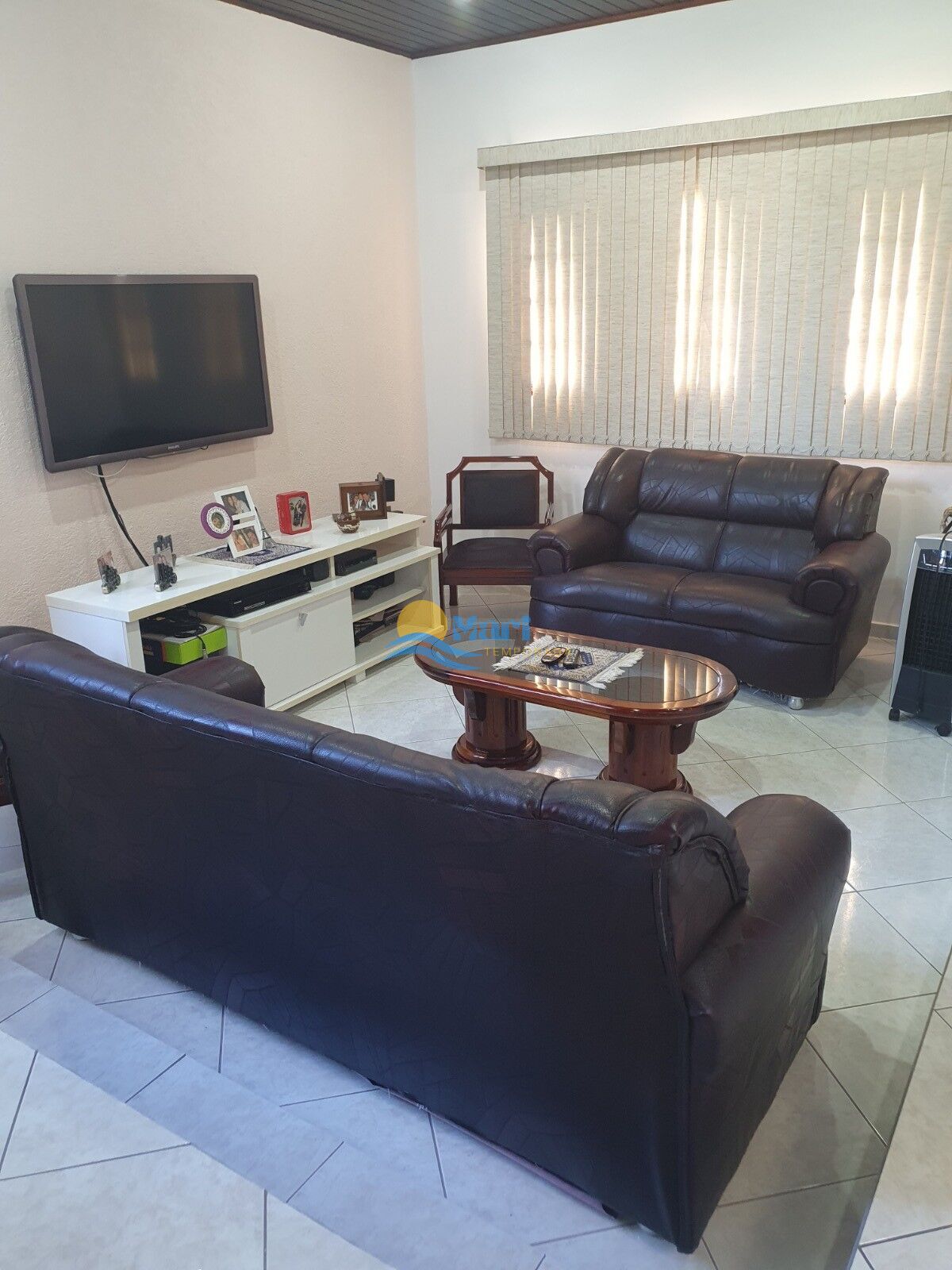 Sobrado à venda no bairro Canto do Forte em Praia Grande, SP. Arejado com muita luz natural. 300m2 de área construída, 4 dormitórios, sendo 2 suítes com armários e ar condicionado, 1 master com closet, 2 dormitórios com banheiro americano, 3 salas, lavabo e cozinha. Dependência completa de empregada e lavanderia. Área de laser com piscina, banheiro, churrasqueira, fogão de cozinha, pia e bancadas em granito com armários. Garagem para 4 autos, podendo expandir para mais 3.